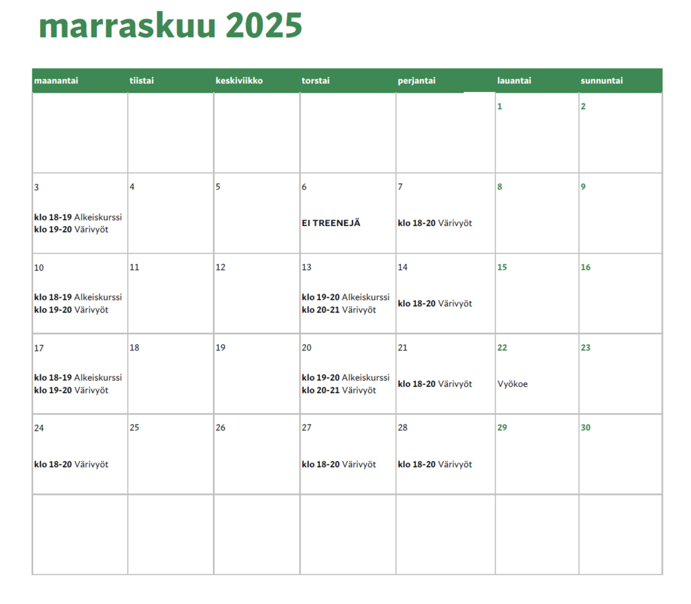 Alkeiskurssi aloitti treenit 25.8.2025 klo 18.