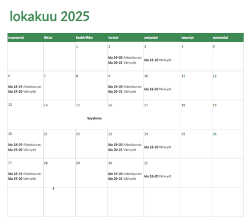 Kuukausimaksu 35e (myydään kokonaisina kausina, kevät ja syksy)